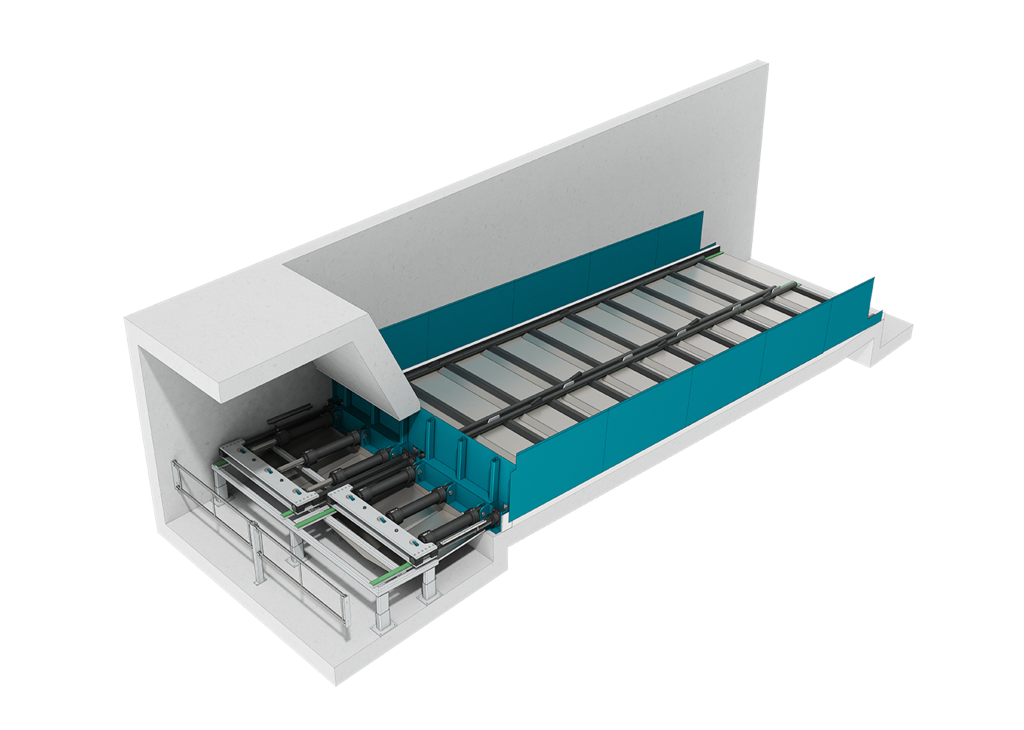 TYRANNOSAURUS® Feeders provide an excellent solution for optimising the feeding process. The feeder works both as a buffer and as a feeder for the process and lengthens the loading intervals. Its moving floor continuously feeds an optimum amount of material into the process as it communicates with the shredder / crusher, allowing the process line to always work at maximum capacity. BMH has also developed a patented two-phased feeder, which simultaneously enables both the optimisation of the crusher/shredder feeding and truck unloading in the other end.