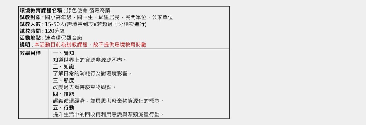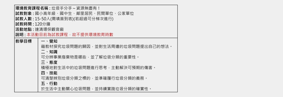 若您有參與環境教育課程的需求,歡迎聯繫我們 或