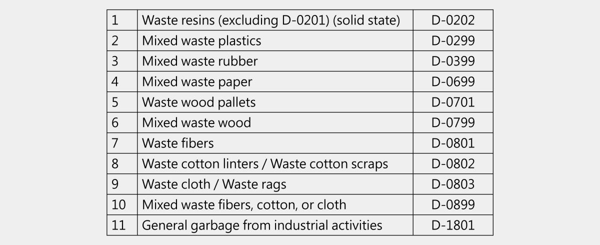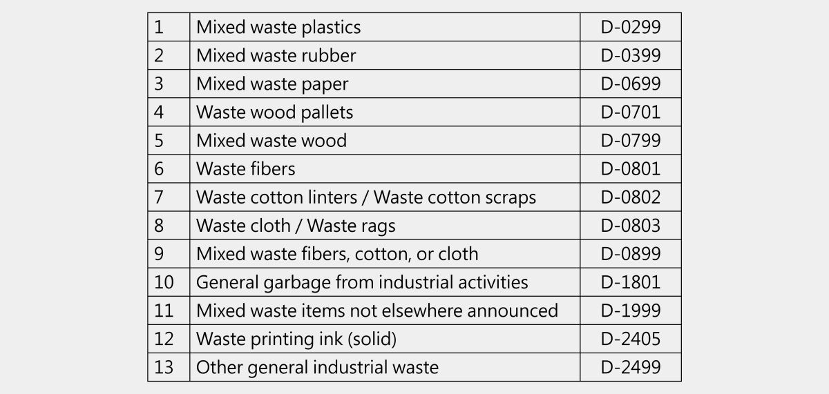 Dakim Guanyin Plant – Accepted Waste Categories and Codes