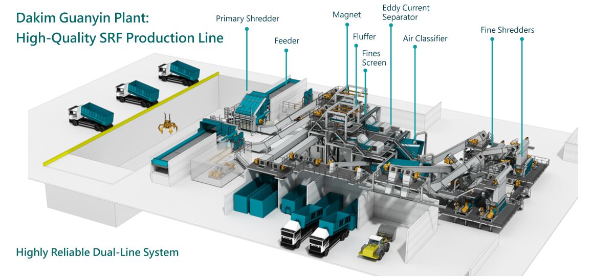 The Dakim Guanyin Plant is equipped with the world’s highest-capacity waste processing technology: the "TYRANNOSAURUS®" system by BMH Technology from Finland.